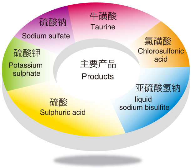 我們的主要產(chǎn)品有?;撬?、硫酸、硫酸鉀、氯磺酸、硫酸鈉、亞硫酸氫鈉等